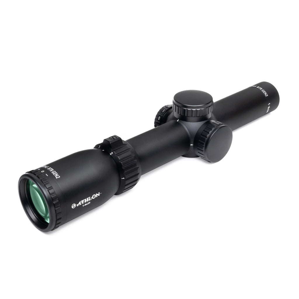 This Midas BTR GEN2 1-6×24 is equipped with ATSR4 reticle that is specifically designed for 3 gun competition. With hold over points for both bullet drop and wind compensation, the ATSR4 reticle is designed for 68 and 69 grain BTHP 223 Rem/5.56mm NATO rounds. It is also suitable for many other bullet weights in these calibers. The low profile capped turrets will ensure you stay zeroed. The 1.4 moa center red dot is perfect for zeroing your rifle at 200 yards. You can use the dots below the center red dot for targets at 300, 400, 500, and 600 yards. The unique design of the small size dots eliminate target obstruction on 12~18 inch targets beyond 200 yards and allow the shooter to take a quick shot. The dots on the left and right off the center line are the hold over points for 5 mph and 10 mph wind.