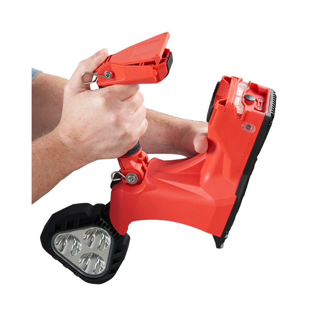 VulcanClutch®käsilaternon varustatud unikaalse kinnituskäsipideme, mis avaneb, võimaldades kohest käed-vabad kasutamist. Pea on täielikult liigendatud, võimaldades tööd otse sihtida.