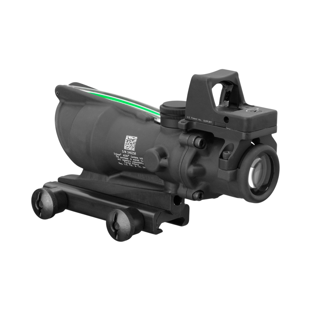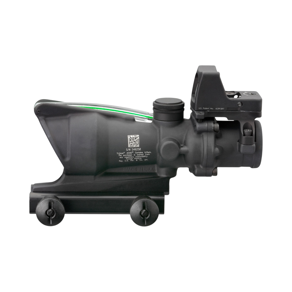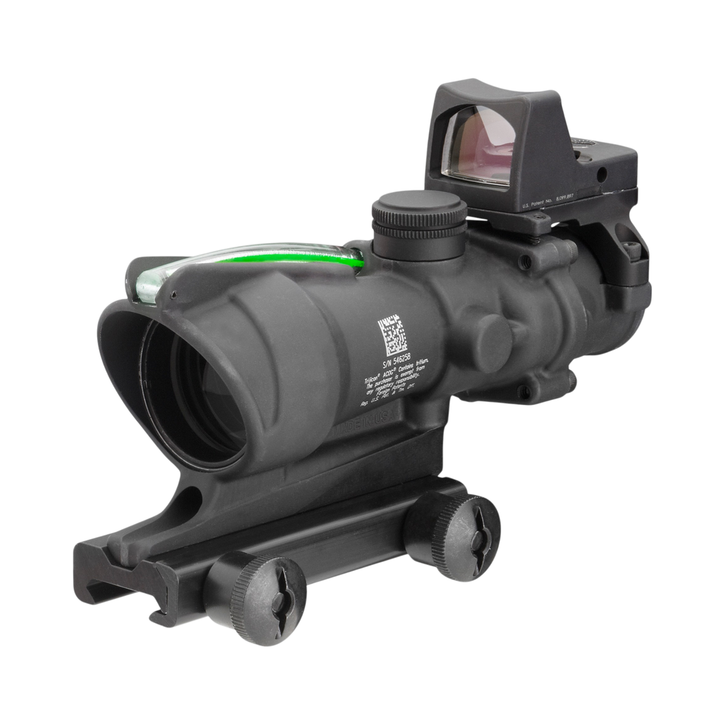 Adapted from the battlefields, US Forces have begun improving this proven Trijicon ACOG scope by adding a small red dot sight on top for close encounter missions. Trijicon has now created a similar model for the public, the TA31-C-100552. The main Trijicon scope provides a dual-illuminated reticle using fiber optics and tritium for bright aiming point in any light condition. The ranging reticle allows for bullet drop compensation out to 800 meters without any manual adjustments. A Trijicon RMR Type 2 sits on top with a 3.25 MOA aiming dot.