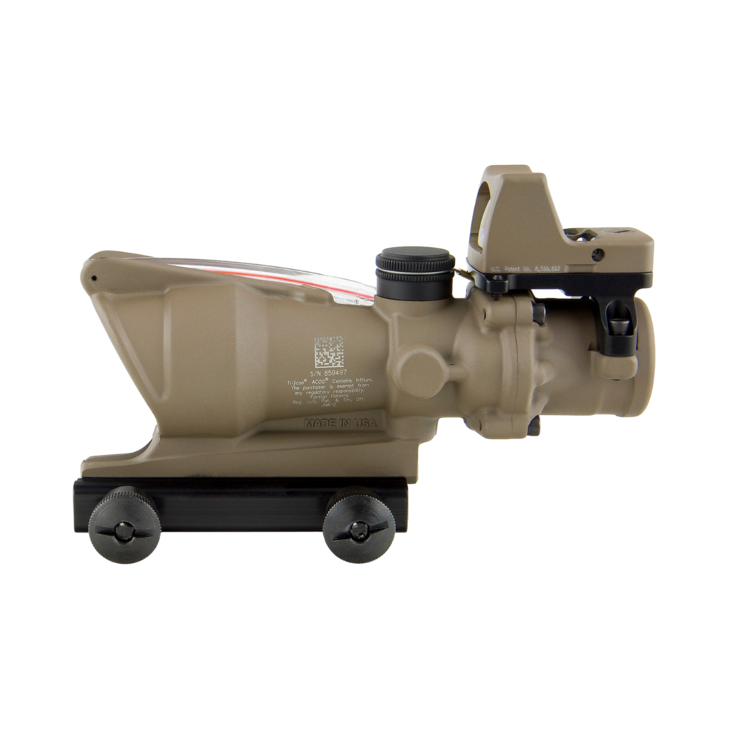 Trijicon ACOG® 4x32, D.I. Red Chevron .223 Reticle, Colt Knob Mount & 3.25 MOA Red RMR Type 2, FDE