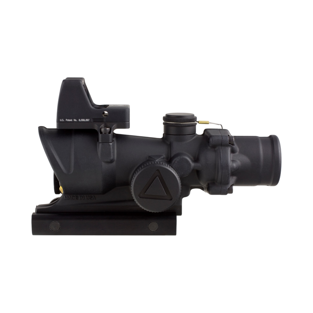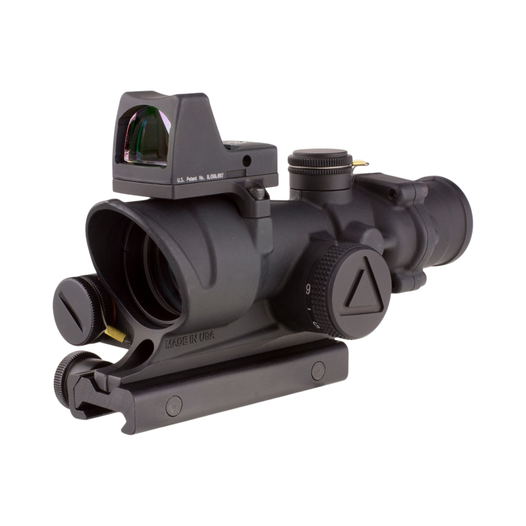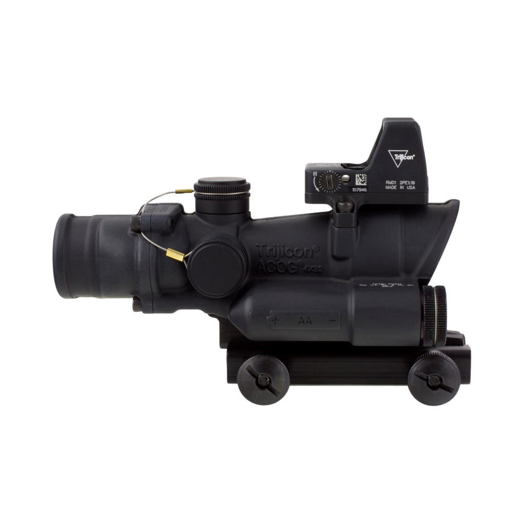 From the legendary ACOG® family of products, the LED ACOG is the first to offer user-selectable brightness controls. Users can select from six adjustable brightness levels with an "off" between each setting, allowing the operator to determine how much to illuminate the reticle - even in transitional lighting. Powered by a single AA battery, the LED ACOG can run for over 12,000 continuous hours (on setting #4). Like all ACOG models, it is forged from rugged 7075-T6 aircraft-aluminum, resulting in a nearly indestructible sighting system and electronics that offer outstanding reliability. Users can select multiple bullet drop compensating and ranging reticle options. Fully night vision device compatible, the Trijicon 4x32 LED ACOG is also compatible with most other 4x32 ACOG accessories available. The TA02-C-100558 comes paired with a 3.25 MOA Ruggedized Miniature Reflex (RMR) Type 2 Automatic LED red dot sight (RM01). The 4x32 LED ACOG body has been optimized by moving the RMR Type 2 mount forward to maximize RMR Type 2 performance in conjunction with the ACOG.