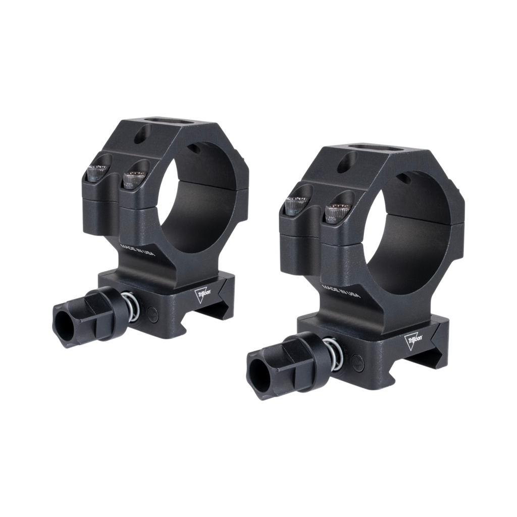 Trijicon Ring Mounts w/ Q-LOC™ Technology feature a 34mm tube, and are designed to keep the optic as low as possible for hunting and long range precision rifle applications. Featuring a Mil-Spec drop test rated 6061-T6 aluminum design and an easy to use one handed tool less mounting system. The spring-loaded design allows for constant retention and maintaining of zero even if the knobs are not tightened.