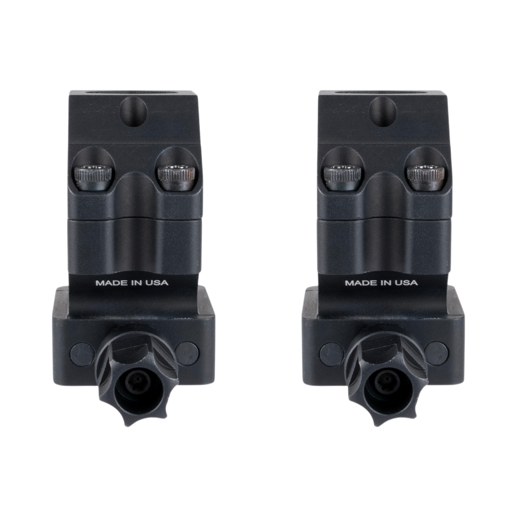 Trijicon Ring Mounts w/ Q-LOC™ Technology feature a 34mm tube, and are designed to keep the optic as low as possible for hunting and long range precision rifle applications. Featuring a Mil-Spec drop test rated 6061-T6 aluminum design and an easy to use one handed tool less mounting system. The spring-loaded design allows for constant retention and maintaining of zero even if the knobs are not tightened.