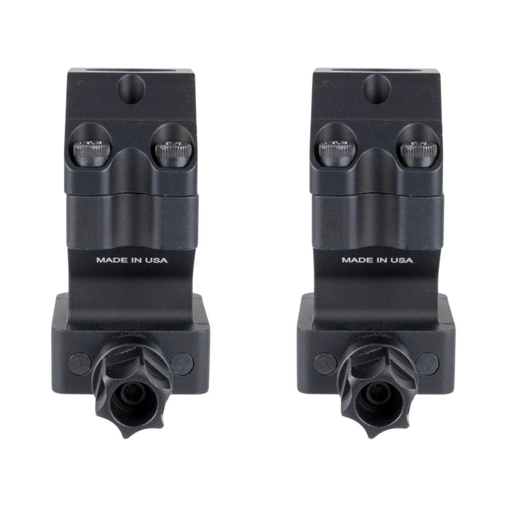 Trijicon Ring Mounts w/ Q-LOC™ Technology feature a 35mm tube, and are designed to keep the optic as low as possible for hunting and long range precision rifle applications.  Featuring a Mil-Spec drop test rated 6061-T6 aluminum design and an easy to use one handed tool less mounting system.  The spring-loaded design allows for constant retention and maintaining of zero even if the knobs are not tightened.