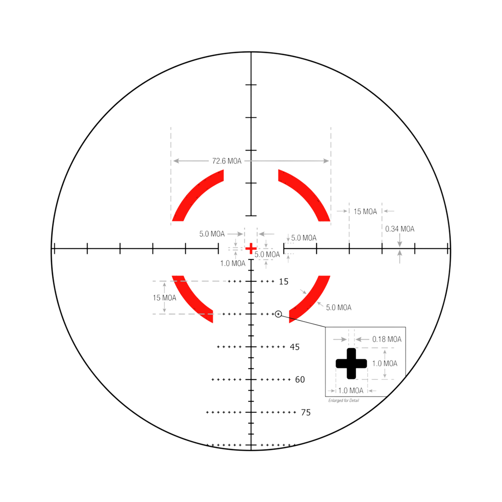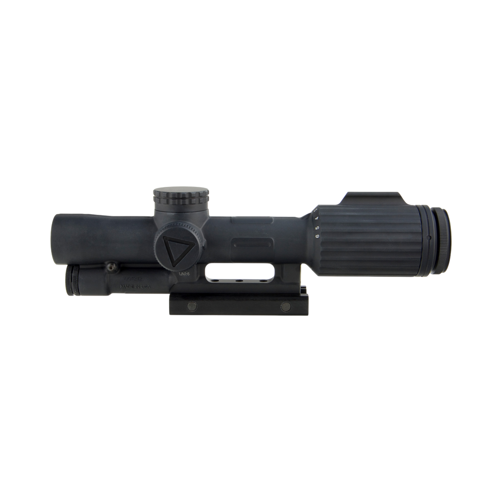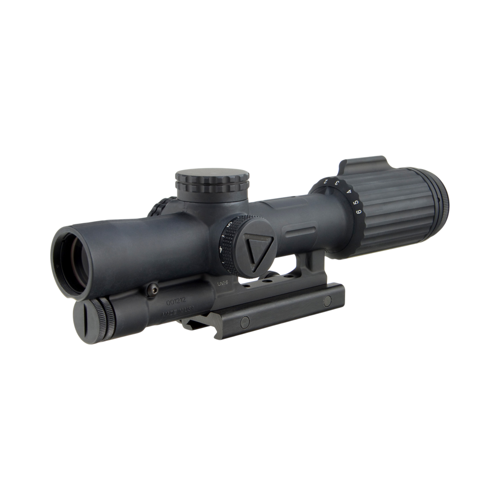 The Trijicon 1-6x24 VCOG® (Variable Combat Optical Gunsight) is a highly rugged, variable magnification riflescope designed for close quarter battle (CQB) and long distance marksmanship. With a forged aircraft-grade 7075-T6 aluminum housing, the VCOG® is nearly indestructible. Superior glass provides exceptional clarity and color with zero distortion. The universal segmented circle/MOA reticle is designed for multi-platform use, accommodating multiple calibers, ammunition weights, and barrel lengths. The first focal plane reticle allows subtensions and drops to remain true at any magnification, allowing the shooter to quickly and accurately apply the correct hold. With ruggedized electronics, the LED reticle is robust enough for any application. Powered by a lithium AA battery (provided), it has 6 user-selectable brightness settings. The green LED boasts a battery life of 1,400 hours at setting 4 (constant on); the red LED has a 700 hour battery life. An integrated dial fin allows easy rotation through the magnification range, and a constant eye relief means no head or stock position adjustments are needed. Waterproof to 20 meters (66 ft.).