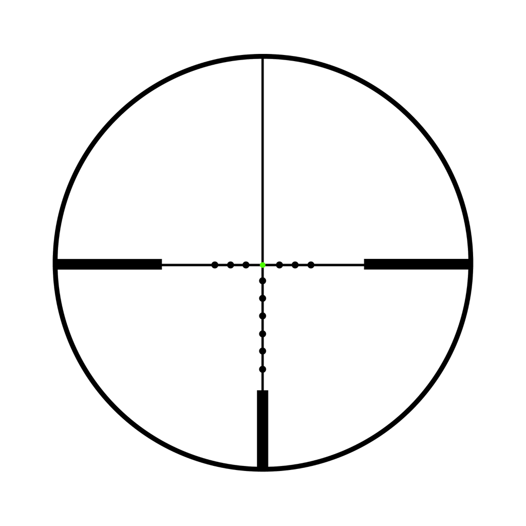 MOA-Dot kryžminis tinklelis su žaliu tašku, apšviestas tritio / šviesolaidžio šviesa
