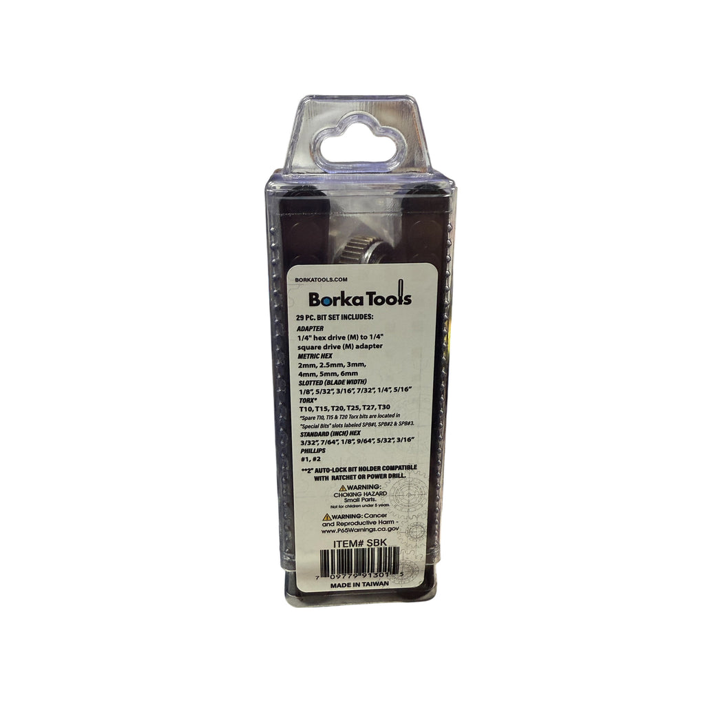 Pielāgots 2" Autolock bitu turētājs (ātra atbrīvošana) – Droši tur bitus un ļauj tos ātri nomainīt. Lietojiet kopā ar iekļauto skrūvgriezi vai elektriskā urbja patronu.