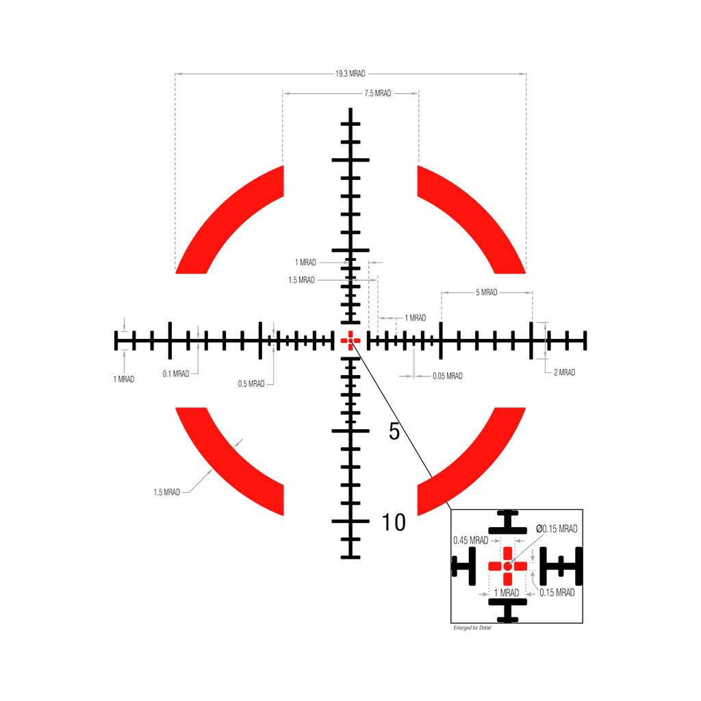 Tēmēkļa optika ar pirmo fokusa plakni (FFP), sarkans/zaļš MRAD segmentēts aplis, 34 mm caurule, matēti melna, atklāti fiksatori
