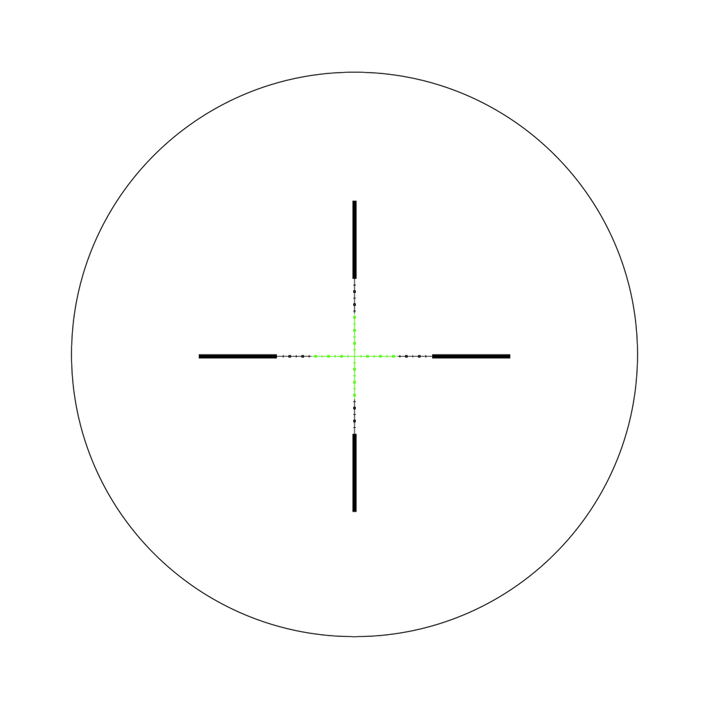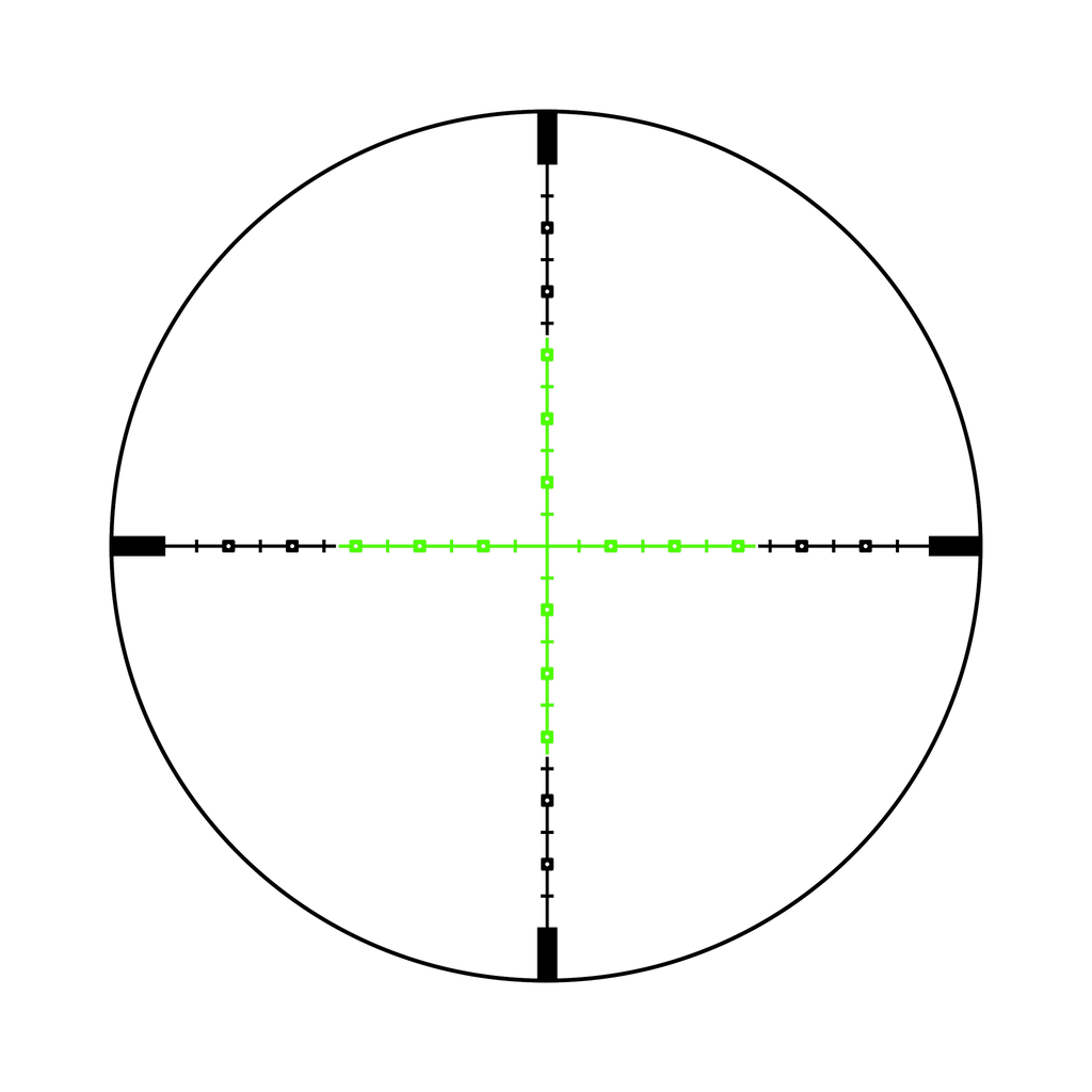 Tēmēkļa optika ar otro fokusa plakni (SFP), zaļais MIL-kvadrāts, 1 collas caurule, matēti melna, regulatori ar zemiem vāciņiem