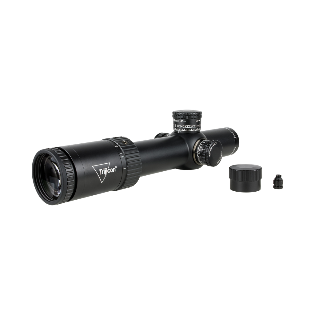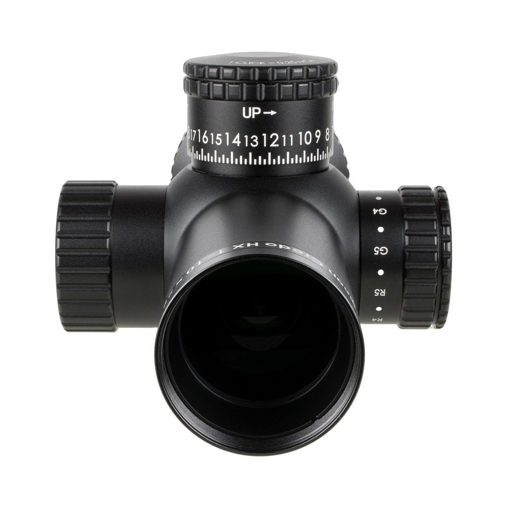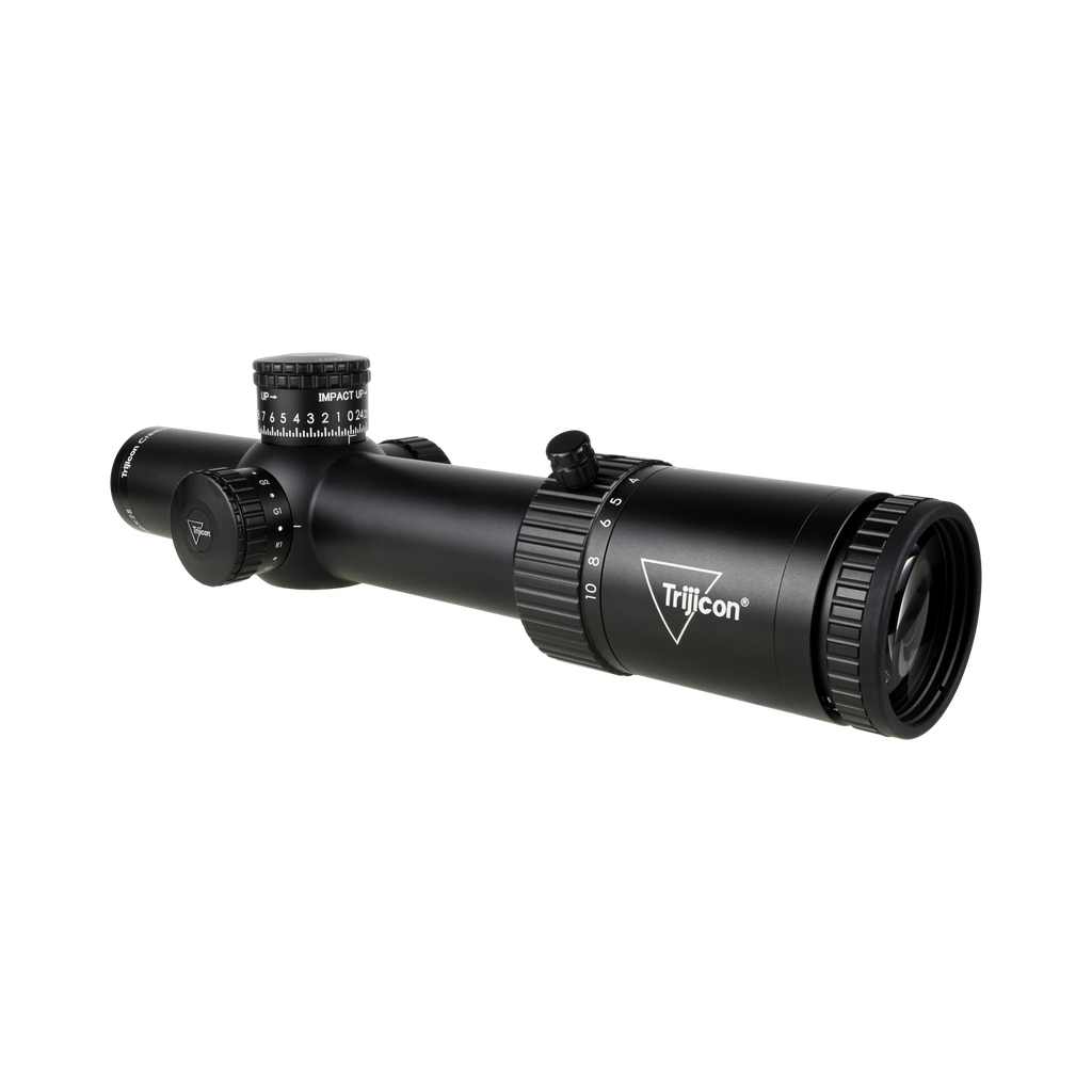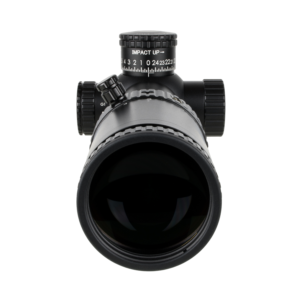 Tēmēkļa optika ar pirmo fokusa plakni (FFP), ar uzlabotu sarkanu/zaļu segmentētu apļa tēmējlīniju, 34 mm caurule, satīna melnā krāsā, atklāts augstuma regulētājs ar atgriešanās nulles pozīcijā funkciju