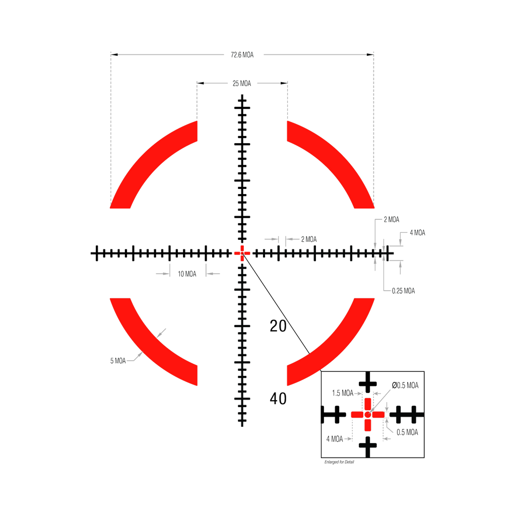 Tēmēkļa optika ar pirmo fokusa plakni (FFP), sarkans/zaļš MOA segmentēts aplis, 34 mm caurule, satīna melnā krāsā, atklāti fiksatori