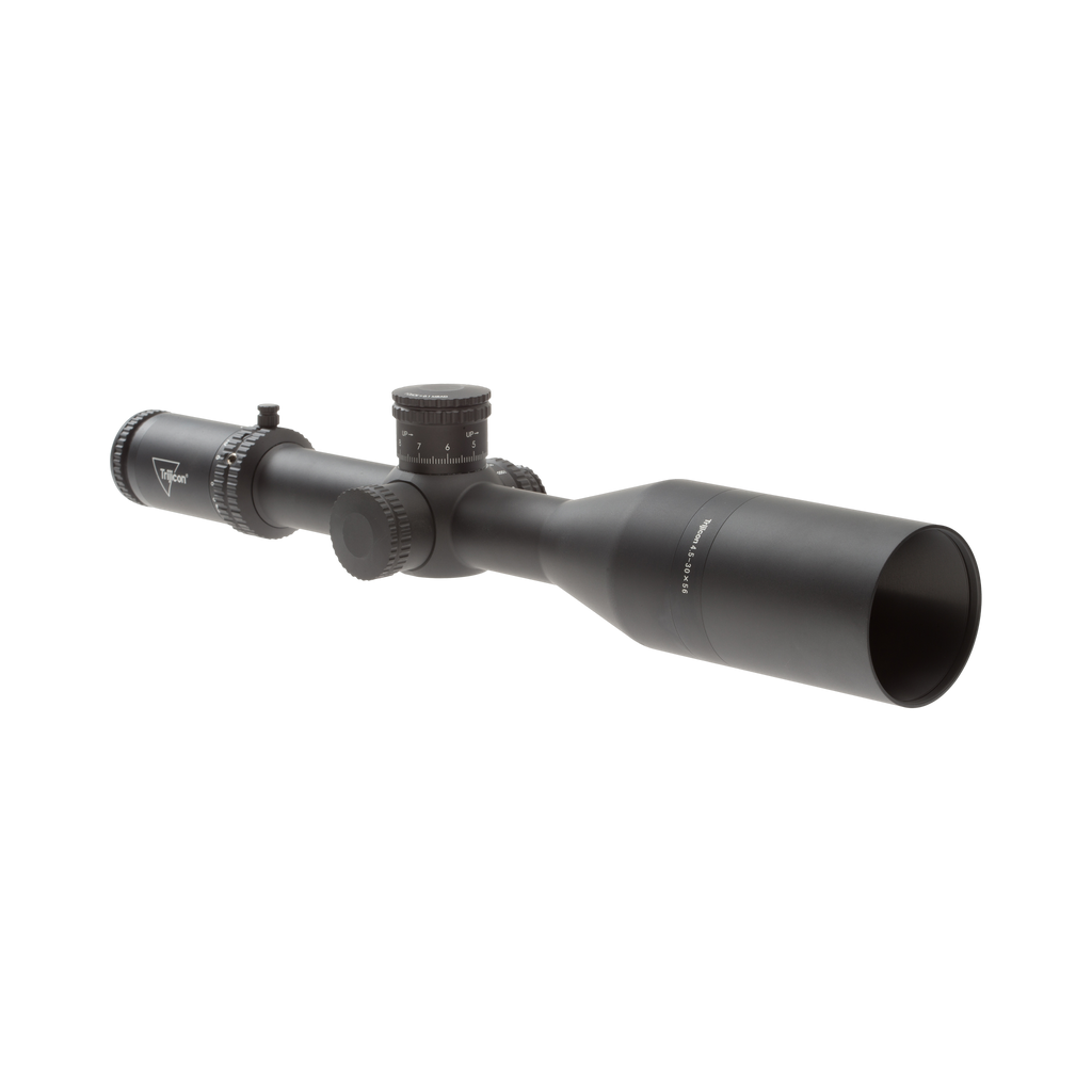 Excellent light transmission. Pinpoint accuracy in any condition. Uncompromised durability. These are the features that set the Trijicon Tenmile® 4.5-30x56 long-range riflescope apart. The 34mm tube provides generous elevation and windage adjuster travel. You can also expect crisp, precise adjustments with zero stop; extra-low dispersion glass for true color and detail without distortion; and dual red/green illuminated reticles that let you enjoy “both-eyes-open” shooting for fast engagement.
