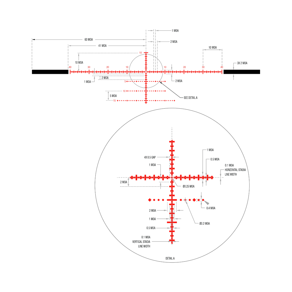 First Focal Plane (FFP) Long-Range Riflescope w/ Red/Green MOA Precision Tree, 34mm Tube, Matte Black, Exposed Elevation Adjuster w/ Return to Zero Feature
