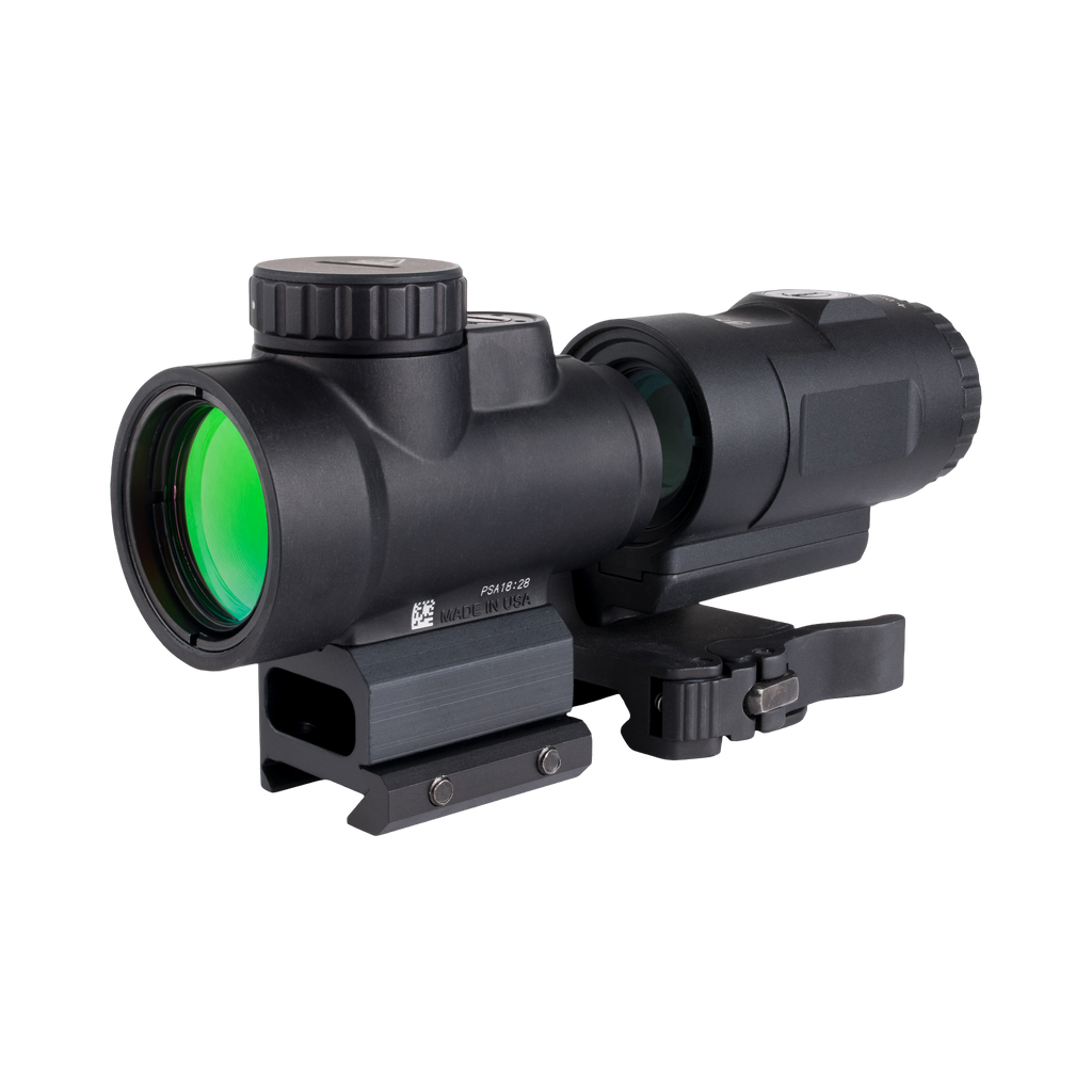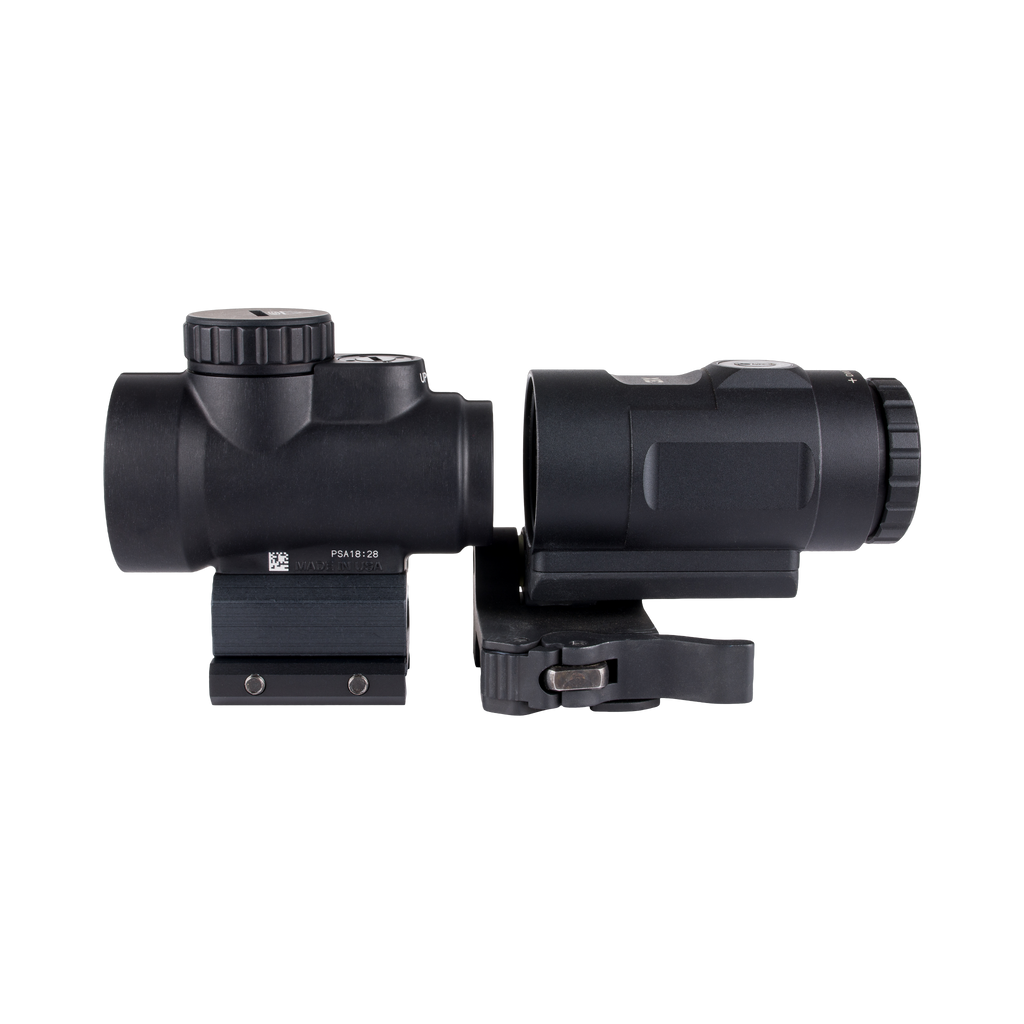 2,0 MOA regulējams sarkanais punkts; pilnībā savietojams ātri noņemams stiprinājums ar Q-LOC™ tehnoloģiju; 3x palielinātājs ar ātri noņemamu stiprinājumu, kas pagriežams uz sāniem