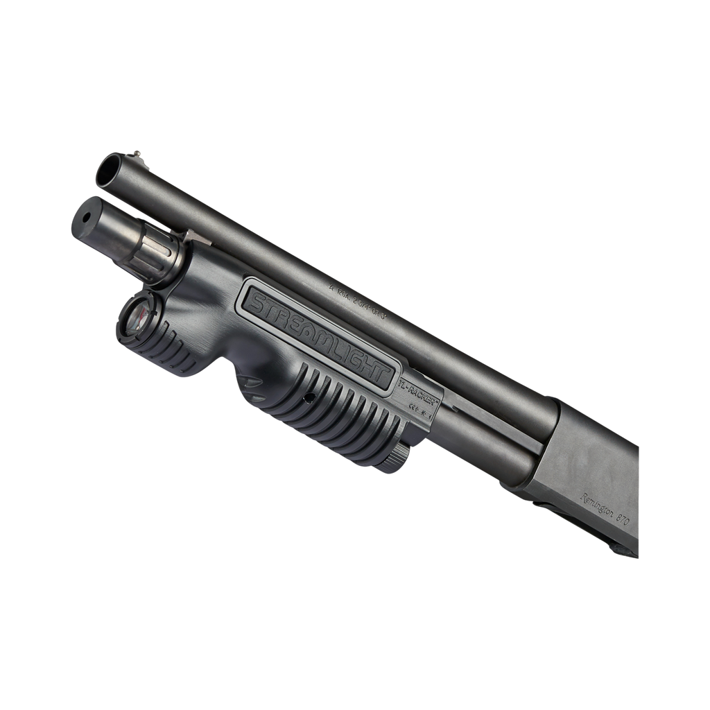 TL-Racker® to zintegrowane, wielofunkcyjne oświetlenie przedniej części strzelby o eleganckim wyglądzie, które zmniejsza ryzyko zaczepienia się dzięki eliminacji konieczności stosowania przewodów zdalnego sterowania. Idealne do wyważania drzwi strzelbą, operacji w zwarciu lub zwiększenia możliwości obrony domu.