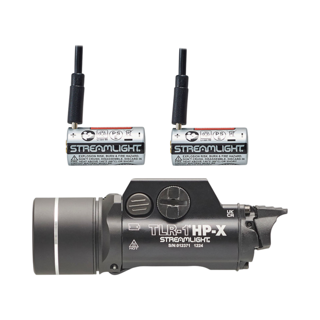Wielopaliwowy TLR-1® HP-X posiada odchylaną osłonę z solidnymi elementami sterującymi, które umożliwiają wymianę baterii od przodu bez konieczności zdejmowania latarki z broni. Konfigurowalne tylne przełączniki łopatkowe, tryb pracy chwilowej i ciągłej oraz programowalny tryb stroboskopowy zapewniają dodatkową wszechstronność w wielu zastosowaniach.