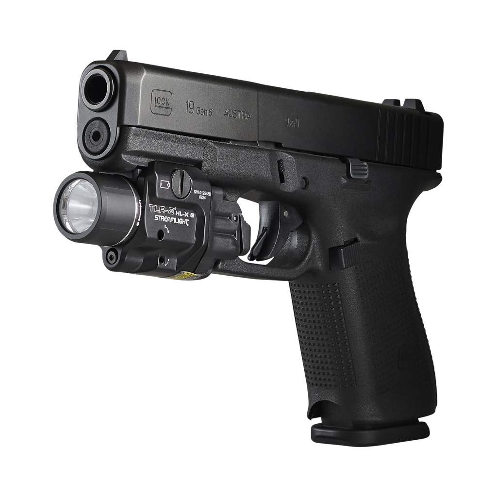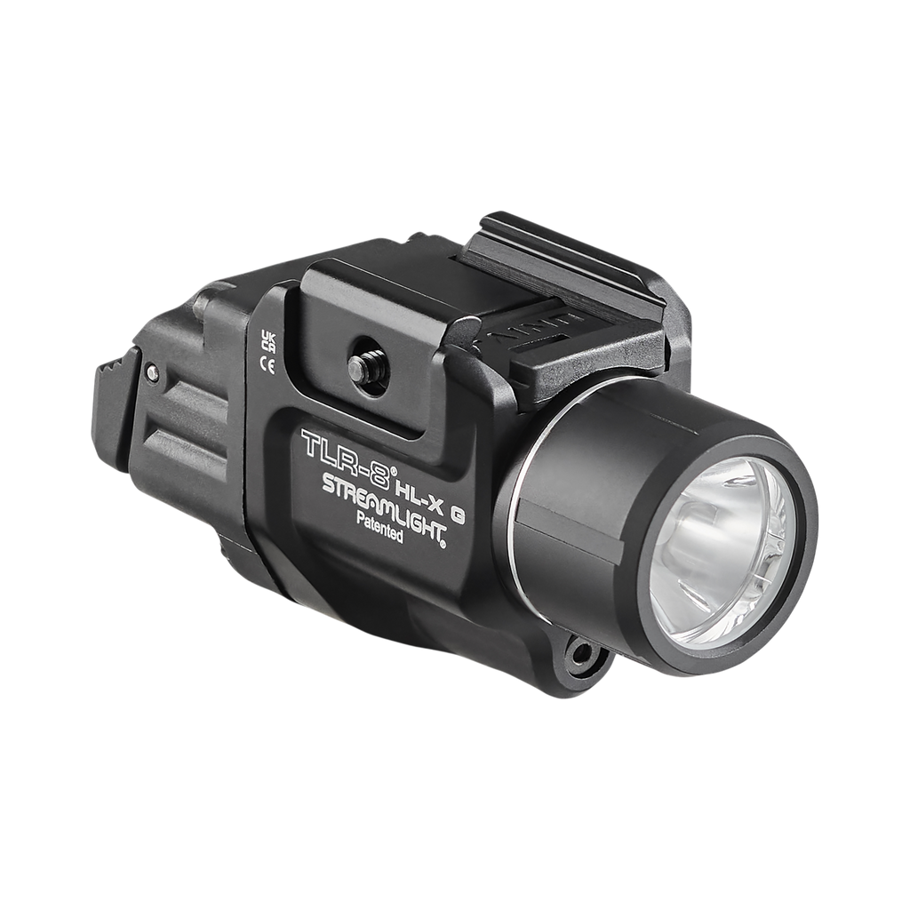 Wielopaliwowa latarka TLR-8 HL-X G montowana na szynie z zielonym laserem może być zasilana akumulatorem litowo-jonowym SL-B9® USB lub baterią litową CR123A. Wyposażona jest w przełączniki łopatkowe wysokiego i niskiego natężenia, które można dopasować do stylu strzelania.