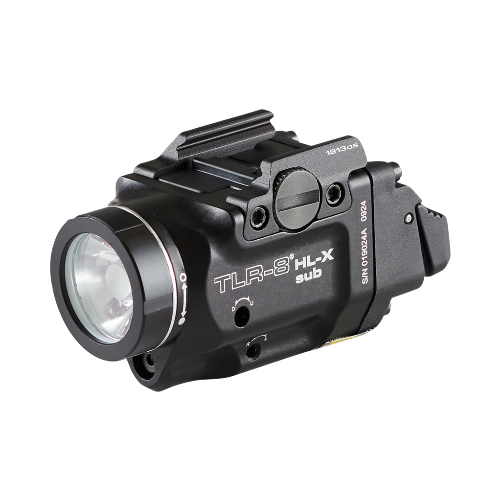 Lampa TLR-8® HL-X o wysokim strumieniu świetlnym, montowana na szynie, została zaprojektowana tak, aby zapewnić większy zasięg wiązki światła. Obsługuje ona zarówno akumulator litowo-jonowy SL-B9® USB-C Streamlight, jak i pojedynczą baterię litową CR123A. Wymienne tylne przełączniki dostosowują się do stylu strzelania użytkownika.