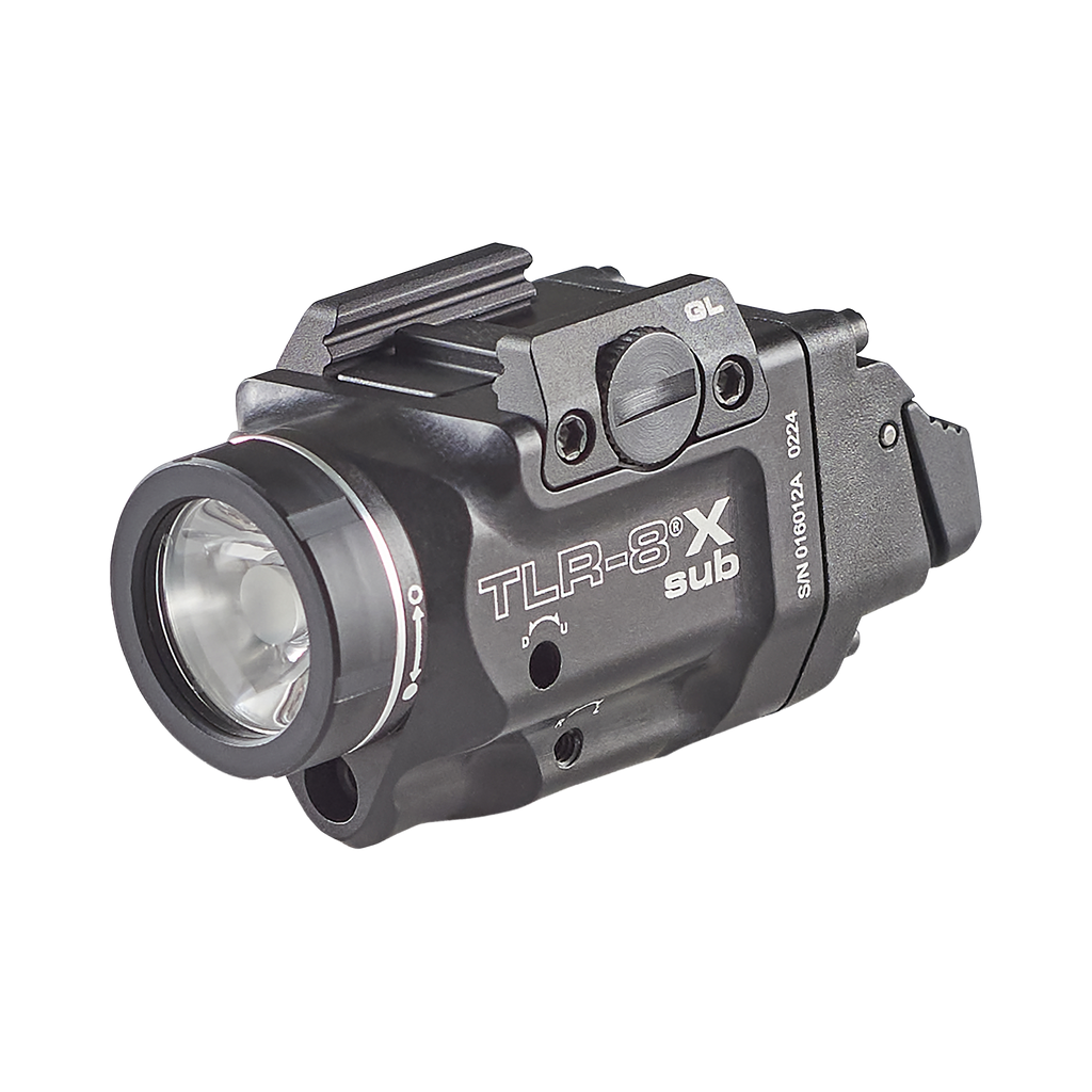 Latarka TLR-8® X montowana na szynie dolnej może być zasilana baterią litową CR123A lub akumulatorem litowo-jonowym SL-B9® USB Streamlight. Wymienne przełączniki tylne można dostosować do własnego stylu strzelania.