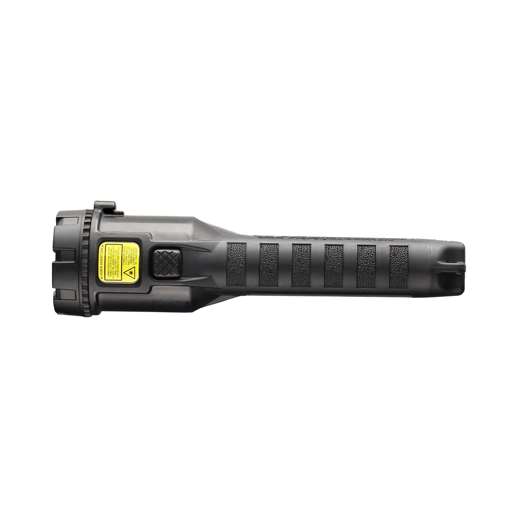 The first intrinsically safe flashlight featuring a red laser pointer. Targeting objects at a distance is easy with a forward-facing LED spot beam and laser pointer that can be used separately or at the same time.