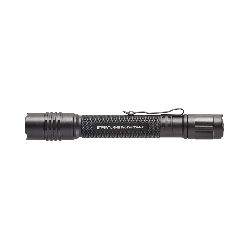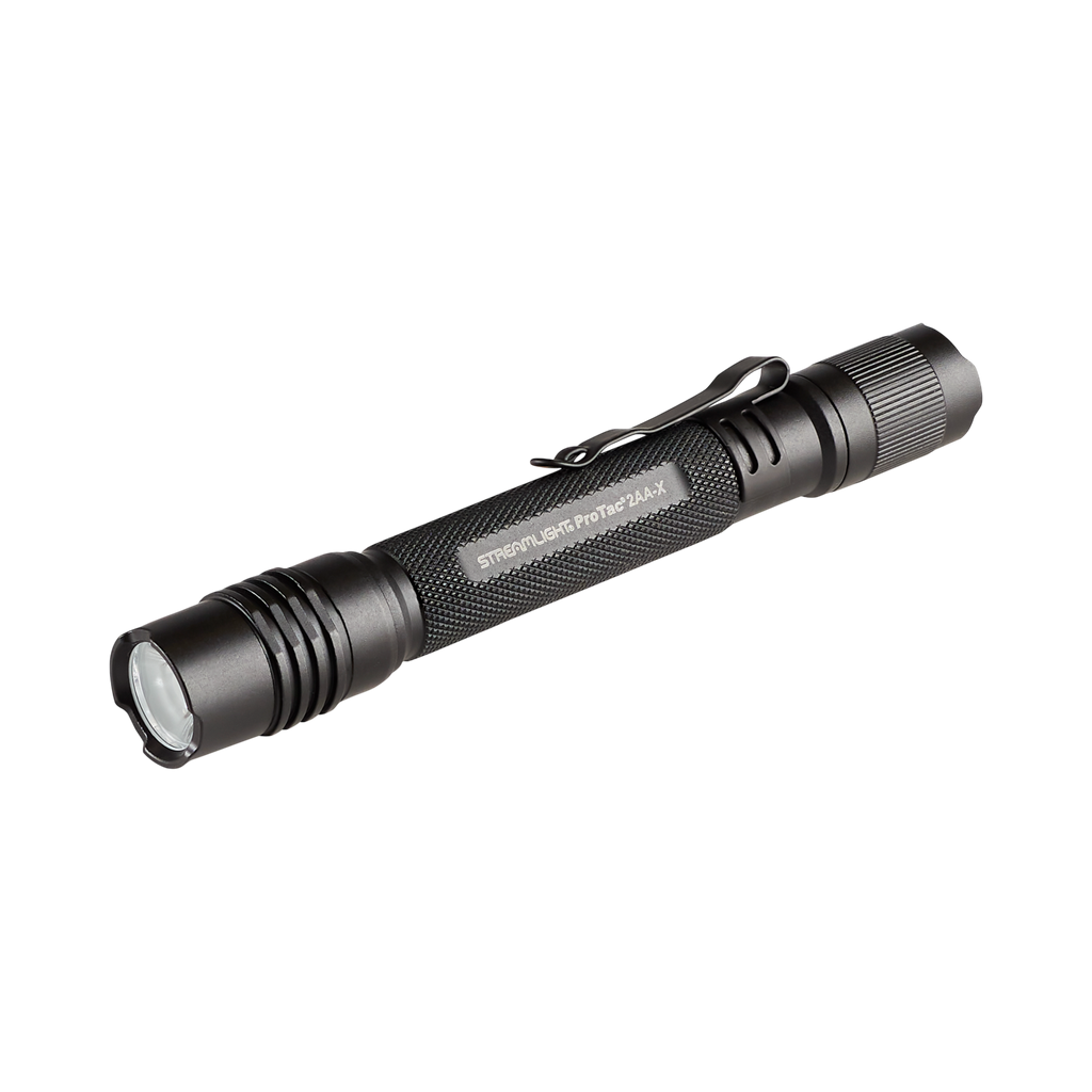 The ProTac® 2AA-X is a slim, tactical flashlight that uses (1) Streamlight USB-C rechargeable battery pack or (2) AA alkaline batteries. About the size of a marker, it conveniently fits in your pocket and produces up to 550 lumens.
