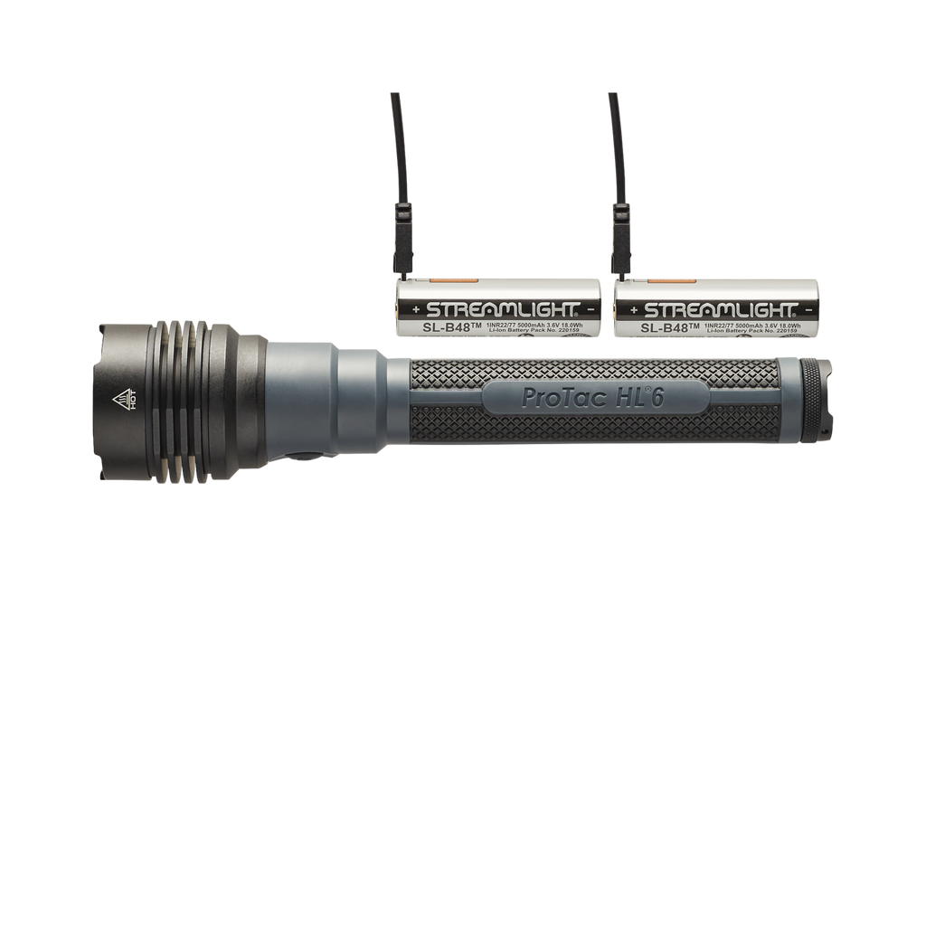 The ProTac HL® 6 flashlight is a powerhouse of illumination, providing 5,300 lumens on high. It uses two of Streamlight's 5000mAh SL-B48® USB-C rechargeable protected lithium-ion battery packs, offering sustained brightness and unmatched run times.