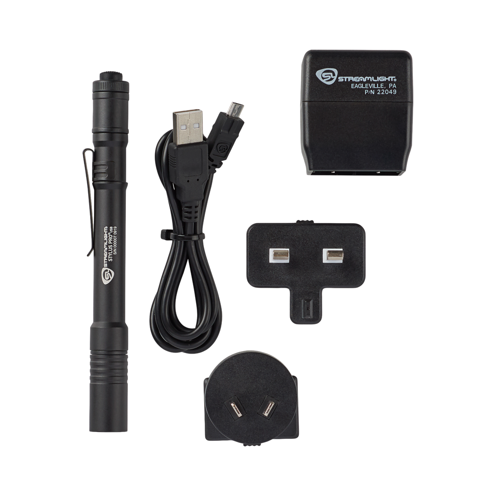 Streamlight Stylus Pro USB - 240V AC - Incl. nylon holster - Black with White LED (66135)
