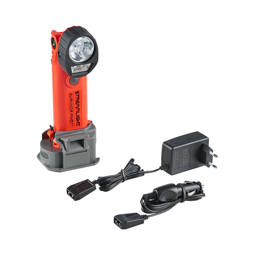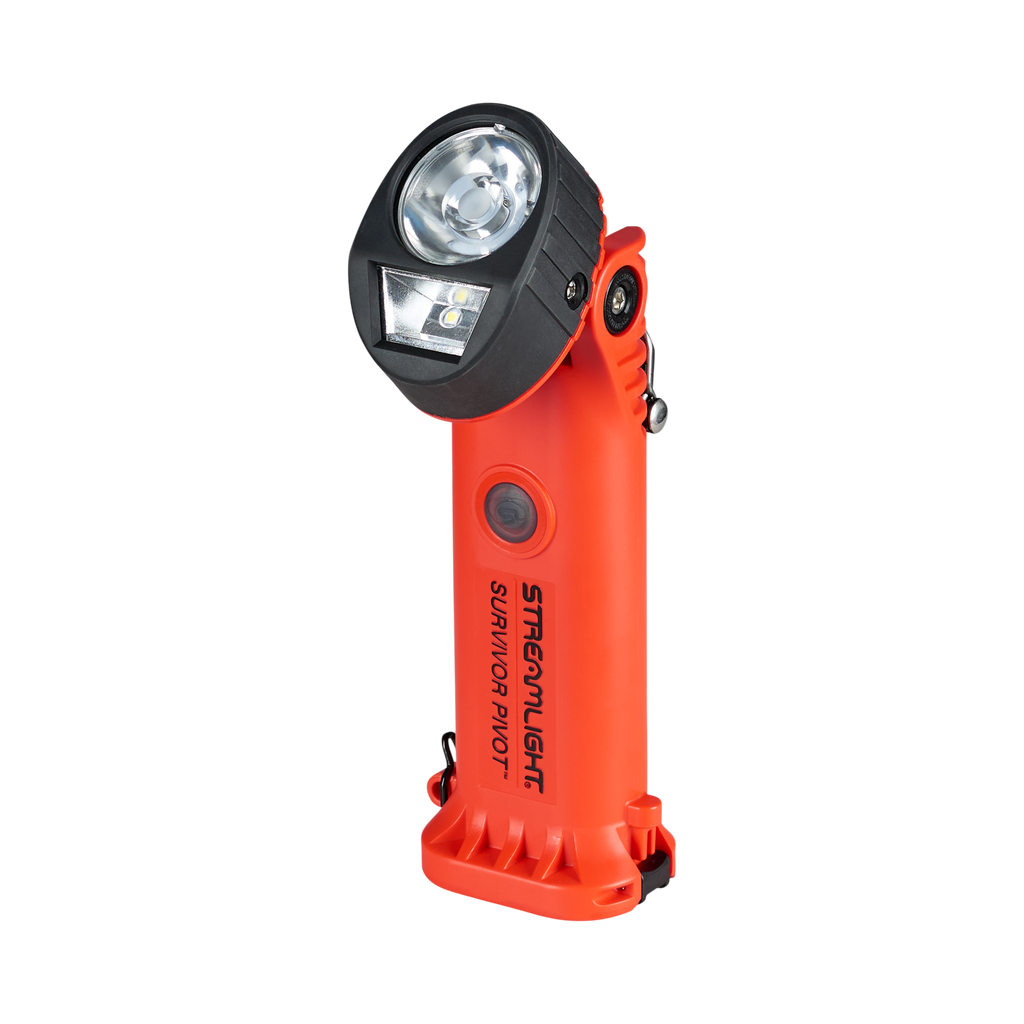 The Survivor Pivot® features a dual beam and a 90° articulating head. Its spot beam uses a cool white, high-power LED for maximum distance illumination and its flood beam is angled downward for area illumination.